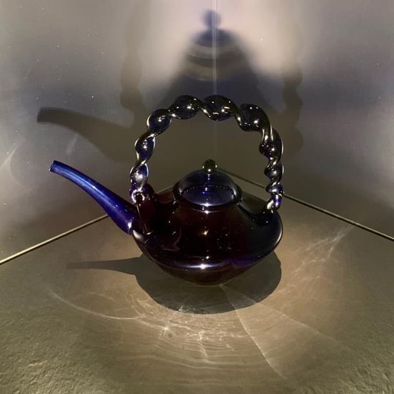 At a recent exhibition of selected inspiring ancient craft at Suntory Museum in Tokyo, glassware actually had a remarkable presence. I remember a gorgeous sake ewer with a handle and small series of beautiful blue, freely blown sake bottles dating from Edo times (1600-1868). They were almost perfect in shape, although not identical, showing that no mold was used. In addition they do not show the scar of the pontil rod, a tool used by European glass makers, that facilitates the production of blown glass. Such a rod enables the artisan to work on the mouth or handle of the piece while holding the shaped glass from the bottom. Because such technique was unknown in Japan, one can understand that these blue bottles, produced in large quantities, required considerable skill from the artisan! These bottles are known as “bidoro”, coming from the Portuguese work “vidro” (glass).
