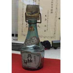 In 1910, Gekkeikan, a dynamic sake brewer from Fushimi (in Kyoto) introduced a small transparent bottle in the shape of a tokkuri, with an attached ochoko cap made from the same material, which was sold to passengers at train stations of the government-owned railway authority. According to the brewery, it gradually expanded nationwide over a few years, contributing to spreading the Gekkeikan brand, eventually becoming Japan’s largest sake producer. Until railways unlocked Kyoto sake from the former Imperial Capital’s limits, Nada sake (Kobe today) was the dominant sake “exporter” to the economic and political capital Edo. Today we can find sake bottles in many different colors. From the sixties, brown and green became most popular. Gekkeikan introduced brown sake bottles before 1927, to protect the drink against ultraviolets.